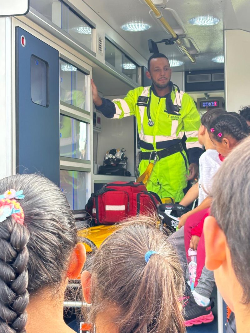 Ao final da atividade, os alunos conheceram de perto a ambulância de resgate utilizada nas operações da Arteris Fernão Dias, despertando a curiosidade e o interesse de muitos, que declararam o desejo de, no futuro, também ajudar a salvar vidas.