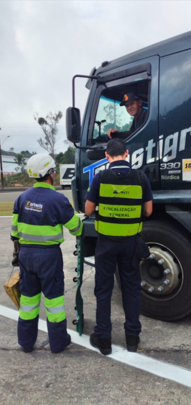 Com foco na fiscalização sobre uso do cinto de segurança, evasão de pesagem e manutenção preventiva, especialmente nos caminhões, as equipes da concessionária realizaram inspeções de segurança, conscientização dos usuários, além de entrega de panfletos e brindes.